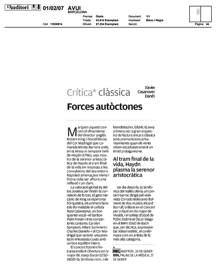 Prensa Cor Madrigal 2007